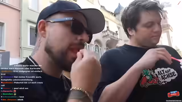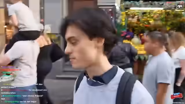 07:33:45Der Streamer meldet, dass das Internet im öffentlichen Raum sehr schlecht ist, was die Streamingqualität beeinträchtigt, auch wenn ein 5G-Router im Rucksack vorhanden ist. Trotzdem interagiert er mit dem Chat und erwähnt Viewer, die ihn persönlich ansprechen, wie den User "Julien". Es kommt zu humorvollen, teilweise anstößigen Bemerkungen im Chat über den Streamer "Frederik" und seine Freundin. Die Gruppe ist weiterhin auf die Rückkehr ihrer Kameramänner Jan und Tobi angewiesen.