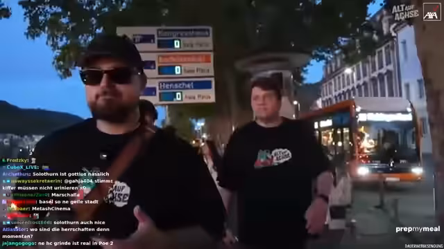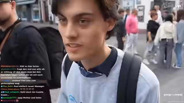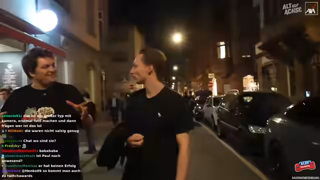 06:40:11Die Gruppe parkt kurzzeitig auf einem Radweg zum Be- und Entladen, was zu Irritationen bei Passanten führt. Es wird über die Rechtmäßigkeit des Parkens auf dem Radweg diskutiert und humorvoll die Konsequenzen thematisiert, falls ein Strafzettel ausgestellt wird. Ein Zuschauer namens Frederik erkennt die Gruppe und spricht sie an. Er entpuppt sich als League of Legends-Spieler und Noway-Fan, der zufällig in der Nähe ist und die Gruppe in die Innenstadt lotsen kann. Es wird über Frederiks Gaming-Fähigkeiten und sein Studium gesprochen. Die Gruppe bedankt sich für seine Hilfe und lädt ihn auf ein Eis ein. Es wird überlegt, ob das Parken auf dem Radweg illegal war und welche Konsequenzen dies haben könnte. Es wird humorvoll diskutiert, wer die Verantwortung für den Strafzettel übernehmen würde. Die Gruppe setzt ihren Weg in die Innenstadt fort, begleitet von Frederik.