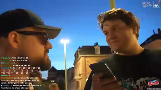 08:10:32Die Gruppe ist in Heidelberg angekommen und beschreibt die Situation als chaotisch, aber mit vielen netten Leuten. Es wird ein wundervoller Sonnenuntergang erwähnt, den sie gemeinsam genießen wollen. Der Plan ist, die Zuschauer zu einem Feuerwerk mitzunehmen. Themen, die im Stream besprochen wurden, sind Stuhlgang, Sex-Geschichten aus Taiwan und mentale Gesundheit. Es wird erwähnt, dass es langsam dunkel wird und die Brille vergessen wurde. Die Gruppe überlegt, ob sie ein Licht dabei haben, um im Dunkeln besser sehen zu können, und diskutiert, wie lange sie die Türen offen lassen sollen, vermutlich im Zusammenhang mit einem Lagerfeuer und dem Feuerwerk am Abend.