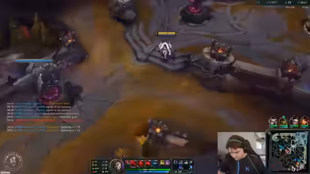 03:27:31Das Team um den Streamer gerät in eine kritische Phase mit wenig Ressourcen. Er analysiert, dass sie zwar stark sind, aber ohne Teleportport und gute Positionierung verlieren. Es kommt zu mehreren engen Teamkämpfen, in denen gegnerische Fähigkeiten wie der Rumble-TP und Cleanse der Schlüssel zum Sieg sind. Das Team versucht, den Baron zu sichern, während es gleichzeitig die Map kontrolliert, um den Gegnern den Kampf aufzwingen.