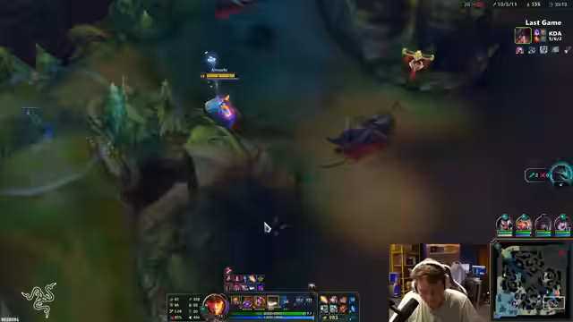 01:27:07Ein intensives League of Legends-Spiel mit sehr hohen Gegnern, die den Streamer aus dem Level halten und kontrollieren. Der Gegner-Jungler hat den Streamer permanent getötet, was zu einem Rückstand führt. Trotzdem wird das Spiel mit einem strategischen Zapper-Sieg abgeschlossen. Es folgt eine LP-Abrechnung: Der Streamer ist jetzt nur noch 3 LP vom Grandmaster-Rang entfernt und diskutiert die große Lücke zwischen Grandmaster und Challenger.
