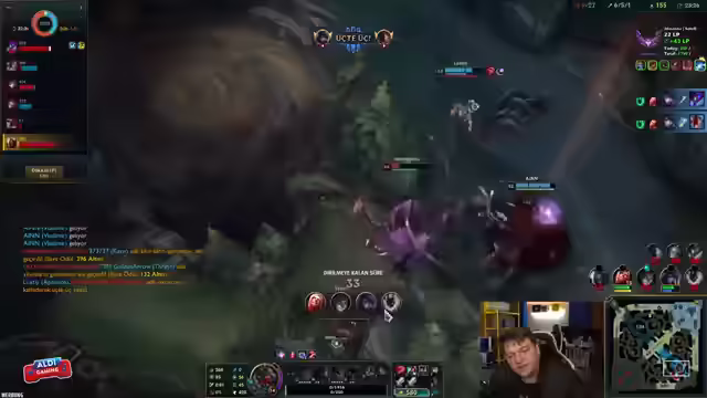 02:02:43Der türkische Server wird als der bisher schlechteste Server bezeichnet, den der Streamer erlebt hat. Er äußert sich überrascht über die dortigen Spieler und deren Spielweise. Trotzdem wird die Hoffnung nicht aufgegeben, dass die Kale im Team irgendwann stark sein wird. Es wird überlegt, ob ein Reset sinnvoll wäre und die Notwendigkeit betont, die untere Lane zu unterstützen. Der Streamer muss als Xerath ohne Vision in der Sidelane spielen, was als problematisch angesehen wird. Es wird diskutiert, ob jetzt gepusht werden soll und ein Fight möglich ist. Die Bedeutung von Vision für das Pushen wird hervorgehoben und der Wunsch geäußert, dass der Support dies erkennt und entsprechend handelt. Es wird die Schwierigkeit des aktuellen Spiels betont und die Notwendigkeit, hart für die Siege zu arbeiten. Der Streamer beschreibt die Situation als 'Turbo-Malochung'. Die Sprachbarriere und die unterschiedliche Spielweise der Spieler auf dem türkischen Server stellen zusätzliche Herausforderungen dar, die es zu überwinden gilt.