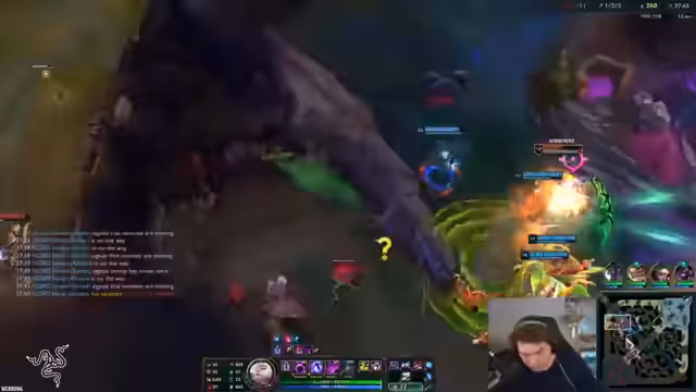 06:15:18Der Streamer testet das Wissen des Chats über League of Legends, indem er ein Quiz veranstaltet. Er schildert seinen Denkprozess bei der Identifikation von Champion-Fähigkeiten wie 'Crystallize' und 'Rushing Blow', die er nach und nach richtig zuschreibt. Er bezieht den Chat aktiv in die Lösungsfindung ein, fordert die Zuschauer auf, falsche Antworten in den Chat zu schreiben, um Spoiler zu vermeiden, und lobt sogar Teilnehmer mit Gutschriften, die richtige Antworten erraten.