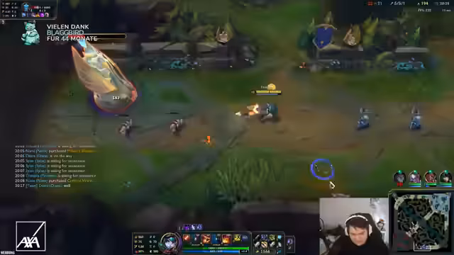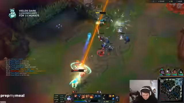 00:03:44Der Stream beginnt mit der Analyse eines League of Legends-Spiels. Es wird ein Mid-Lane-Duell zwischen Lux und Melfight diskutiert, wobei untypische Builds wie Q-Start für Lux thematisiert werden. Der Streamer befindet sich in einem不利于的 Start mit einer 0-8-Bilanz und kämpft darum, eine Siegeswelle von fünf Siegen in Folge einzuleiten. Ein unbedachter Tod wird zugegeben und die Frühphase des Spiels als stark, aber mit einem starken Leistungseinbruch im Mid-Game beschrieben, wobei die Mercs als Schlüssel zum Sieg identifiziert werden.