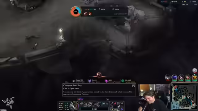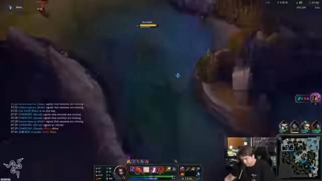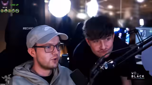 07:57:48Die Aufmerksamkeit kehrt zum aktuellen Spiel zurück. Der Streamer ist als Support in einem hochrangigen Ranked-Spiel und diskutiert mit seinem Team über Picks, Items und strategische Züge. Insbesondere wird die Wirksamkeit von Mercs gegen ein volles AP- und-CC-Team thematisiert. Das Team entscheidet sich, entgegen den Empfehlungen, keine Mercs zu kaufen, was der Streamer als "fucking fraudulent" und "reportable" bezeichnet, da es die Effektivität gegen die gegnerische Eve stark reduziert.