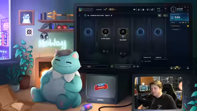 09:37:32Für das letzte Spiel der Session wird eine derbe Flex-Pick mit Jarvan IV in der Mitte gewählt. Der Streamer spürt die Erschöpfung und ist stolz auf die gezeigte Leistung. Er plant für das Spiel, die negativen Erfahrungen aus den letzten Games aufzugreifen, und der Stream endet mit einem 'Warum hab ich Yasu Javan gepickt?', was die mentale Anspannung nach einem langen Tag zeigt.