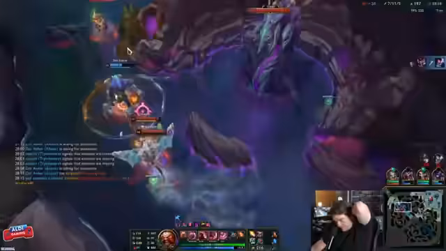 07:20:38Das Gameplay wird als sehr intensiv und stressig beschrieben. Der Streamer ist trotz eines schlechten Anfangsstats (2-10) wieder stark im Spiel. Er und sein Duo-Partner Kani kommunizieren ständig über Spielzüge und Positionen, um den gegnerischen Kha'Zix zu kontrollieren. Der Streamer nutzt sein Lissandra-Ult, um gegnerische Kämpte zu unterbrechen, und das Team koordiniert den Einsatz von Redemption und anderen Fähigkeiten, um in einem hart umkämpften Spiel die Oberhand zu behalten.