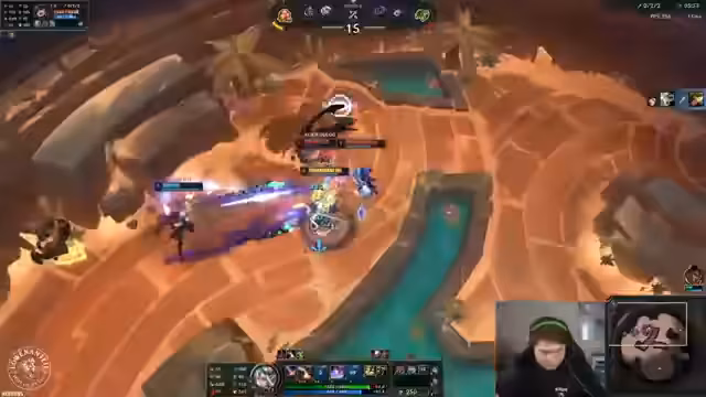 08:51:52Der Stream beginnt mit einer Arena-Challenge, in der der Streamer und Mitspieler verschiedene Champions und Items testen. Es finden sich spielerische Bemerkungen über die Geschwindigkeit von Bären im Vergleich zu Menschen, wobei Anekdoten über einen Russen mit einem Anti-Bären-Anzug und sterbende Menschen erwähnt werden. Man diskutiert über Haustiere wie Bären in Russland oder Großkatzen in Amerika, bevor der Fokus wieder auf dem Spiel und den Teamkämpfen liegt.