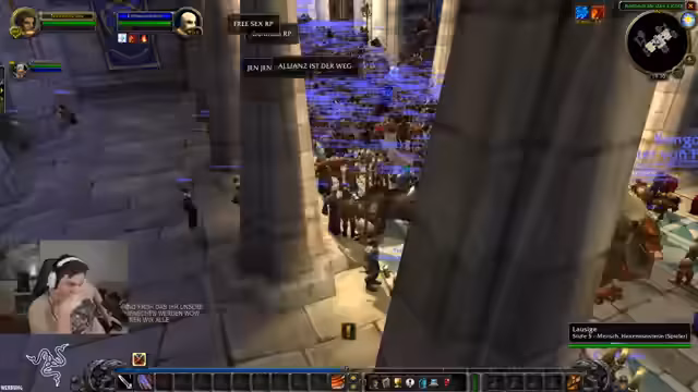 01:42:11Der Streamer ist in World of Classic eingeloggt und navigiert durch die Anfangsgebiete, um nach Sturmwind zu gelangen. Er kommentiert die veraltete Grafik und die ungewohnte Steuerung, die viel Anpassung erfordert. Er erklärt die Anreise über die Tiefenbahn und zeigt das Stadtor von Sturmwind. Gleichzeitig wird das Gameplay von League of Legends fortgesetzt, wo es im Draft zu Diskussionen über Champion-Matchups wie Orianna gegen Akali kommt.