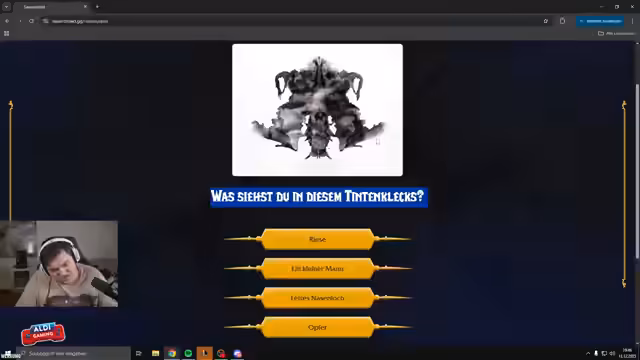05:36:29Nach der Entscheidung für die Allianz stellt der Streamer ein Quiz vor, das den Spielern Volk zuweist, das sie bis zum 31. Dezember spielen müssen. Das Quiz besteht aus 32 Persönlichkeitsfragen, um die passende Rasse (Mensch, Zwerg, Gnom etc.) zu bestimmen. Die Regeln werden erklärt, dass auch bei einem Tod im Spiel das gleiche Volk erneut gewählt werden muss, was die Bindung an die Entscheidung stärkt.