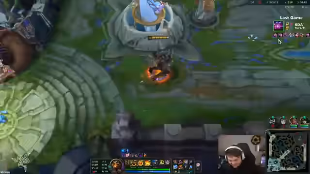 05:15:15Das Spiel erreicht einen kritischen Punkt. Der Streamer identifiziert eine strategische Chance, als Melphite die feindliche Miss Fortune mit seiner Ultimate zu isolieren, damit ihr Team im Teamfight die Oberhand gewinnen kann. Er betont die Wichtigkeit seiner Rolle als Tank, das Team zu schützen und den gegnerischen Schaden auf sich zu ziehen. Trotz der guten Idee und des erfolgreichen Engagements erkennt er im Nachhinein einen Fehler in der Ausführung, als er unabsichtlich zu weit gelaufen ist, was einen Teil des Plans zunichtemachte.