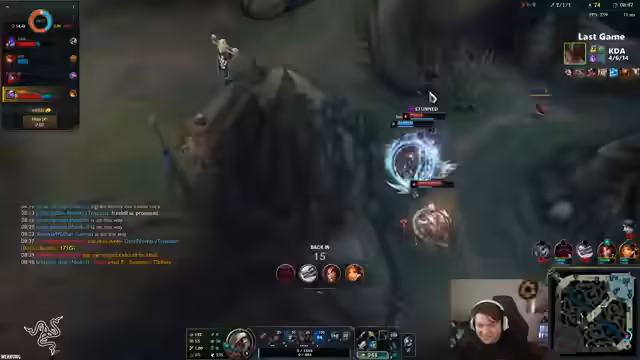 00:14:08Der Streamer befindet sich in einem anspruchsvollen League-of-Legends-Spiel mit dem Champion Xerath. Er berichtet von schwierigen Lane-Phasen, gank-ähnlichen Situationen in der Mitte und einem extremen Snowball-Effekt im Jungle. Er kritisiert scharf das Design, das es dem Jungler ermögliche, durch frühe Fehler das Spiel praktisch allein zu entscheiden, und äußert, dass dies das Game und den Spielspaß negativ beeinflusst.