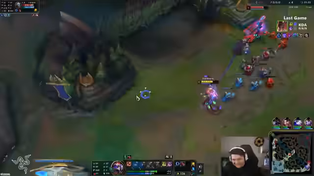 02:30:25Während eines League of Legends-Spiels diskutiert der Streamer die aktuelle Spielsituation. Er stellt fest, dass der Wellenzustand in der Midlane für sein Team katastrophal ist und sie die Wave nicht nach vorne drücken können. Er genüßt es, wieder verschiedene Champions zu spielen, um Varianz ins Spiel zu bringen und sich nicht auf eine einzige Meta zu beschränken. Sein Fokus liegt darauf, das Spiel aktiv zu gestalten und für das Team zu agieren, auch wenn die Lage schwierig erscheint. Er analysiert zudem Fehler in der Teamkommunikation und Positionierung im aktuellen Spiel.
