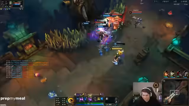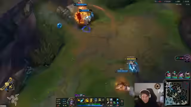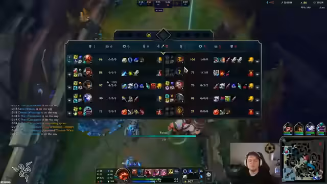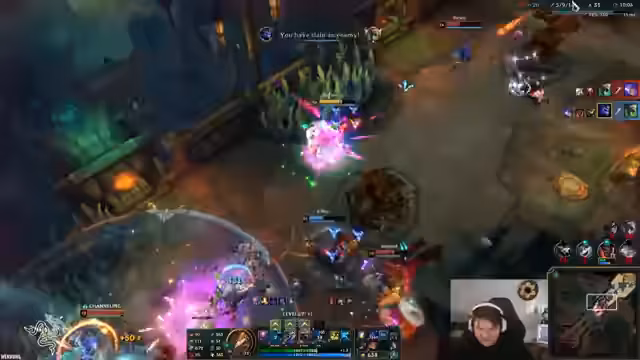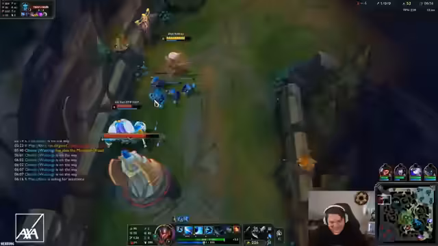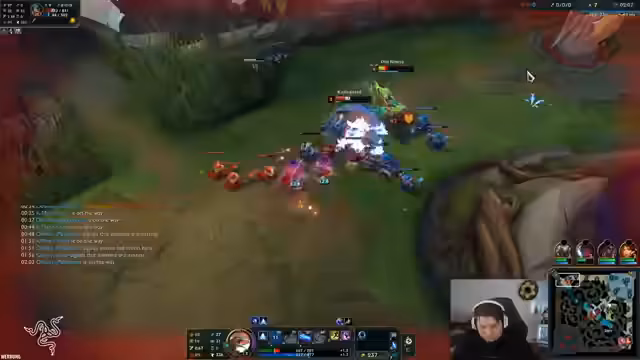 03:15:57Der Fokus liegt auf dem Spielverlauf und den eingesetzten Champions und Items. Der Gegner wird als sehr stark bewertet, insbesondere wegen seines Rakan mit vollem Setbonus und Goldvorteil. Der Streamer experimentiert mit seinen Upgrades und Items, wie z.B. 'Grandmas Chili Oil', und sucht nach Wegen, ins Spiel zu finden. Es kommt zu verschiedenen Teamfights, bei denen der Gegner, insbesondere ein Mundo, als sehr 'OP' (overpowered) empfunden wird. Die Kommunikation im Team ist angespannt und der Drang, das Spiel zu gewinnen, ist spürbar, da es um die Relegation geht.