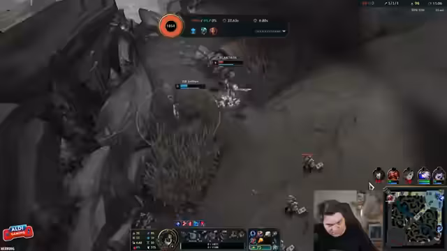 04:25:36Am Ende des Spiels befindet sich der Streamer in einer ausweglosen Situation. Er ist 'underfarmt' und das gegnerische Team hat durch einen 'Wladimir mit Seele' einen enormen Schadensvorteil erlangt. Er erkennt an, dass der gegnerische 'Vladimir zu schnell ist' und er mit seinem 'Ryze im späteren Spiel' sich 'sehr, sehr nutzlos' gefühlt hat. Die Niederlage ist unvermeidlich, und er resigniert in der Frage, was man gegen die übermächtige gegnerische Composition machen könnte.