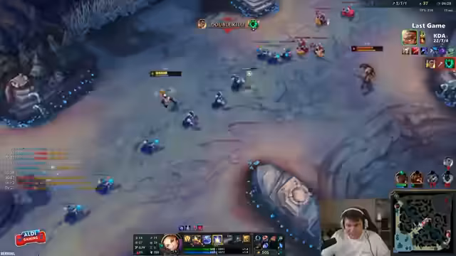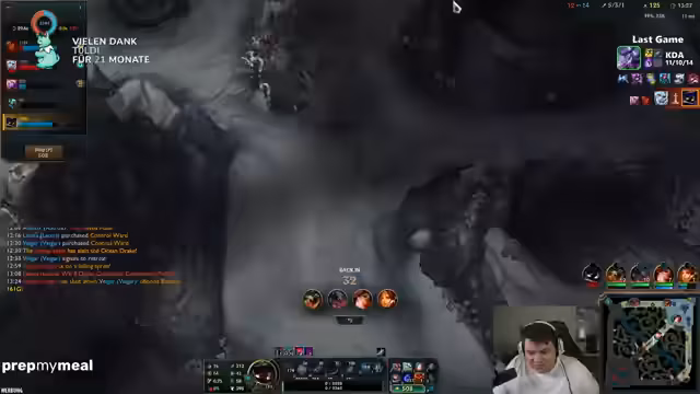 02:00:05Der Streamer berichtet von seiner internen Diskussion im Event-Discord bezüglich der Todesfälle im Hardcore-Modus. Der allgemeine Konsens sei, dass die Teilnehmer absichtlich 'für Content-Tode' sterben müssen, da es ansonsten praktisch unmöglich sei, mit der Spielervahrung zu sterben. Dies führt zu dem Schluss, dass die 'Fallhöhe' eventuell gesenkt werden müsse. Währenddessen wird sein eigener LoL-Spiel von der Gegen-Soraka komplett kontrolliert, was die 'disgusting' Heals des Supports unterstreicht.