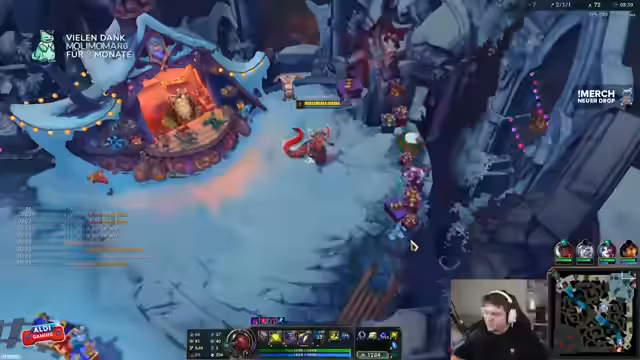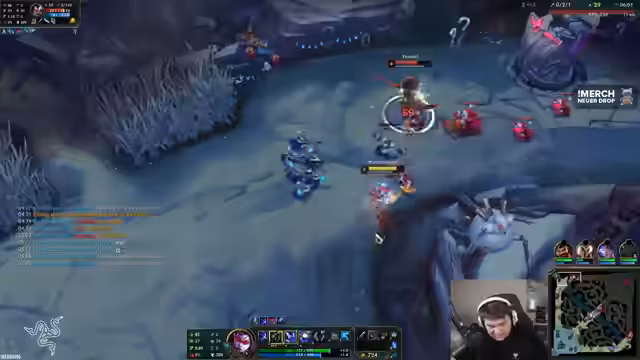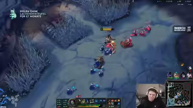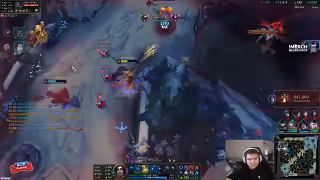03:39:59Das erste Merch-Paket ist verlost, und der Streamer bereitet weitere Giveaways vor. Gleichzeitig wird ein aktuelles Match analysiert: Trotz guter Early-Game-Performance wird der späte Schwierigkeitsgrad betont. Champions wie Diana und Jinx machen den Spielfortschritt schwer. Der Streamer überlegt, ob Bloodletter oder Shadowflame als Items gebaut werden sollen, und kritisiert die mangelnde Skalierbarkeit von Mel im Late-Game. Das Team wird als 'gebehindert' bezeichnet, und die Notwendigkeit von Objective-Kontrolle wird diskutiert.