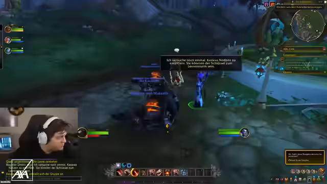 03:05:14Der Streamer wechselt das Thema zum aktuellen Gameplay in World of Warcraft. Er begleitet Zuschauer durch einen zufälligen Dungeon. Dabei kommt es zu technischen Herausforderungen, wie der Einladung von Spielern von anderen Servern, und zu gameplay-spezifischen Schwierigkeiten, wie der Handhabung von Aggro und der Führung der Gruppe. Das Dungeon-Erlebnis war nicht ohne seine Hürden und erforderte Anpassungen vonseiten des Streamers.