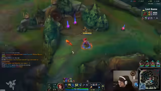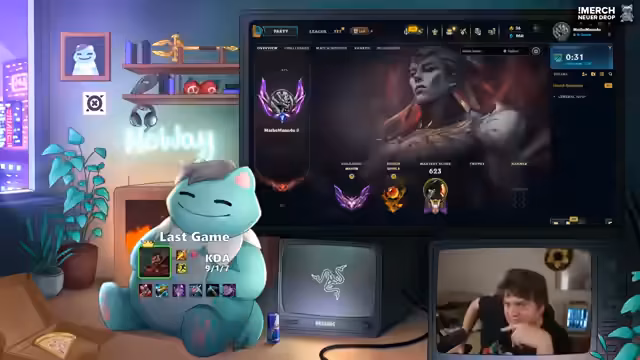 00:30:36Nach dem Start des Streams beginnt der Streamer mit einem League of Legends-Spiel. Er wählt einen Jungle-Champion und überlegt sich, welchen er nutzen soll. Er erwähnt den Champion Bart, mit dem er angeblich eine 0% Winrate hat, und betrachtet ihn als einen Hardcounter. Auch der Champion Bestatt wird in Erwägung gezogen. Der Streamer will sein Q-Level formen und kurz das Bein des gegnerischen Bart holen. Während des Spiels muss er den Sound kurz ausmachen, da er ein gefolgendes Spiel als große Enttäuschung empfindet. Bei einem späteren Spiel wird der gegnerische Support tot, was der Streamer kommentiert.