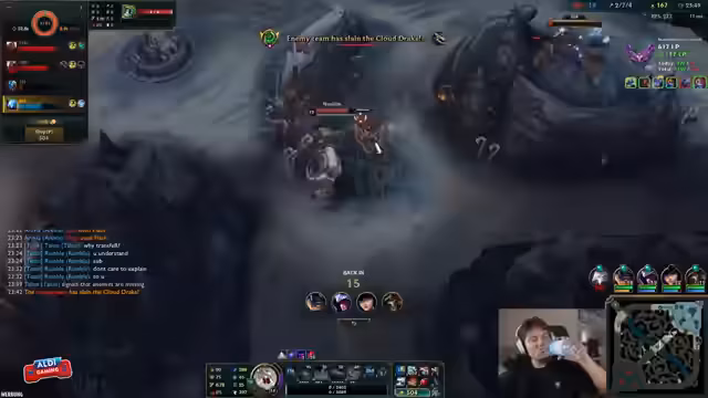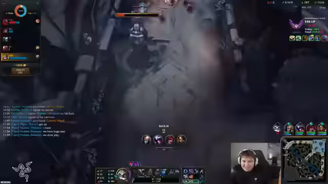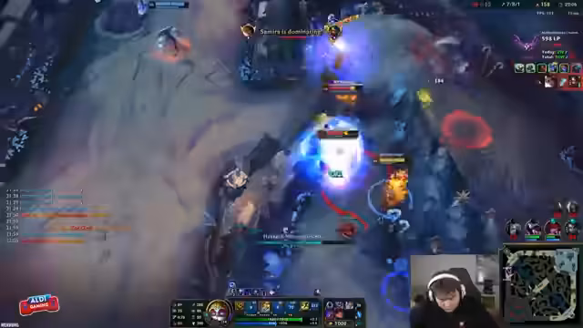 00:30:11Die nächste Quizrunde dreht sich um die Basis-Gesundheitspunkte (HP) von Champions. Teilnehmer müssen Champions wie Twisted Fate, Tahm Kench und Aatrox richtig einordnen. Während des Spiels treten erneut technische Probleme mit Kameras und Internetverbindungen auf, die den Ablauf verzögern. Diskussionen über Champion-Eigenschaften und falsche Platzierungen dominieren die Interaktionen.