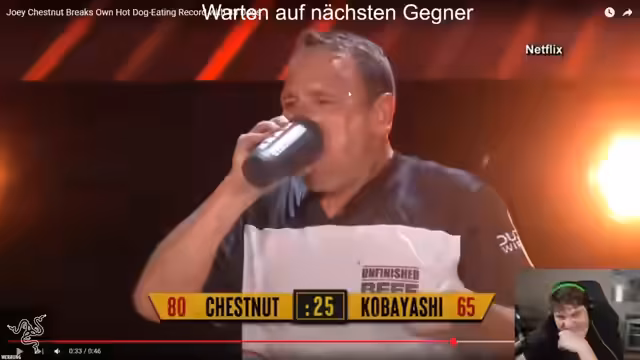 03:09:54Der Streamer erlebt eine überraschende Wendung im League of Legends Spiel, als sein Team einen wichtigen Kampf gewinnt und einen Turm zerstört. Er lobt die Kiana für ihre beeindruckende Kombo und betont, wie wertvoll es ist, den Atakan zu bekommen, besonders wenn das Team im Rückstand ist. Er erklärt, dass der Atakan schwer zu töten ist, viel Schaden verursacht und mehr Stats gibt, wenn man im Rückstand ist. Er spricht über die Bedeutung von Serpent Fang und Serildas für seinen Build und diskutiert verschiedene Runenoptionen für Set. Er analysiert die Spielsituation und plant seine nächsten Züge, um das Spiel zu gewinnen. Nach dem Spiel schaut er sich Speed-Eating-Videos an, darunter eines von Furious Pete, der einen Burger isst. Der Streamer findet das Video widerlich und betont, dass er es nicht genießen kann. Er schaut sich auch ein Video von Joey Chestnuts an, der 80 Hotdogs in 10 Minuten isst und findet das sehr beeindruckend.