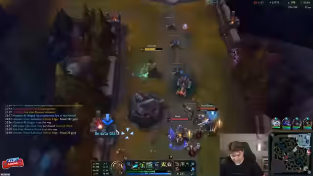 05:41:57Nachdem der Streamer beginnt, den Infinity-Edge-Build zu vollziehen, wird er mit einem starken Power-Spike fühlen und versucht, mit seinem Team strategisch vorzugehen, indem er um den gegnerischen Renekton herumspielt und sich auf der Nebenlinie erholen möchte. Er erklärt, dass er seine Tristana aufgrund der früheren Nerfs in der Laning-Phase schwieriger findet und dass die Infinity-Edge die Stärke des Champions wieder erhöht hat. Trotzdem ist er hinter und hofft, durch gutes Movement und Timing wieder ins Spiel zu finden.