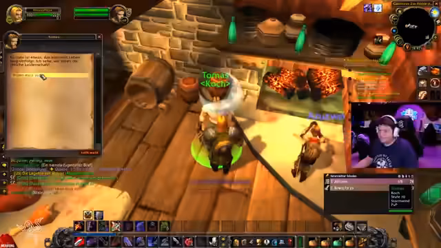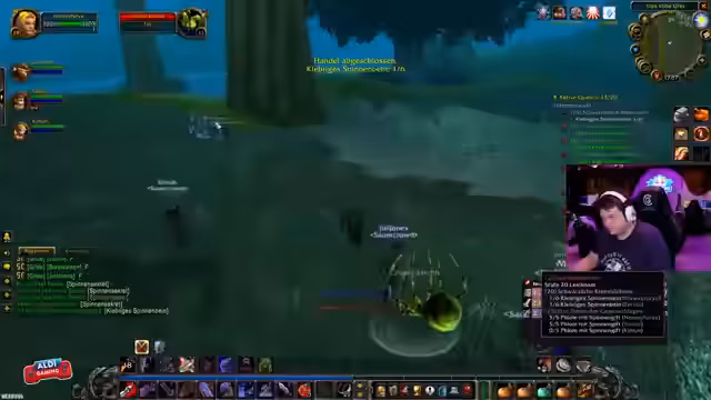 06:27:10Während das Grinding der Quests voranschreitet, beobachtet und kommentiert der Streamer das Gameplay anderer Spieler in der Umgebung. Er ist beeindruckt von der Effizienz eines Spielers, der mehrere Gegner auf einmal mit Flächenangriffen (AoE) beseitigt. Der Streamer nutzt die Gelegenheit, tief in die Lore von World of Warcraft einzutauchen und spricht über verschiedene NPCs, Entwickler-Interviews auf der BlizzCon und berühmte Community-Memes wie den 'Red-Shirt Guy' und 'Fick Hahn', was zeigt, wie tief er in der Spielwelt und der Community verankert ist.