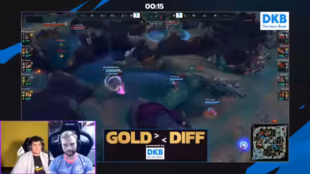 02:01:40Im Verlauf des Streamings wird der enorme Leistungsunterschied zwischen professionellen LEC-Spielern und den Teilnehmern des NNO Cups deutlich. Der Streamer stellt fest, dass die spielerischen Fähigkeiten und das Makro-Play der LEC-Teams weitaus überlegen sind. Die Teams rotieren besser und nutzen intelligenter die Spielkarte. Er zitiert die CS-Raten und führt dies darauf zurück, dass die Spieler aus Europa ein komplett anderes, konsequenteres Gameplay an den Tag legen, was dem 'kompletten Fiebertraum' des aktuellen Spiels diametral gegenübersteht.