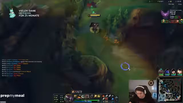 00:12:33Das Hauptfokus des Streams liegt auf dem Spiel League of Legends. In einem Spiel auf der Jungle-Position wird mit Graves gespielt. Der Streamer beschäftigt sich intensiv mit der taktischen Lage, fehlendem Team-Engage und den gegnerischen Picks wie Bart. Es werden verschiedene Strategien diskutiert, wie man objektiviert und in Fights kommt, zum Beispiel durch das Erreichen von Item-Builds wie Shieldbow und Blutgier. Die Chancen auf einem Sieg trotz schwieriger Team-Kompensation werden analysiert.