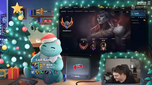 09:45:56Nach einem langen Gaming-Tag, der neun Stunden League of Legends umfasste, kündigt der Streamer das Ende des League-Streams an. Er möchte nun etwas World of Warcraft spielen, um abzuschalten und die Quests zu üben. Er bedankt sich bei allen Zuschauern für die Begleitung, wünscht frohe Weihnachten und eine gute Nacht. Gleichzeitig erklärt er, dass es sich um einen Leak-Stream handelt und zukünftig wieder League of Legends-Content folgen wird.