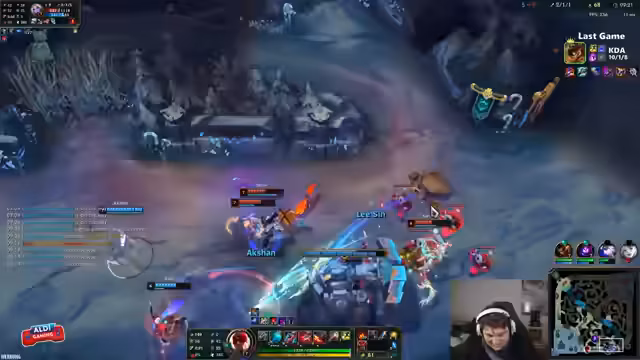 08:03:05Der Streamer reflektiert über die Herausforderung, in Spielen mit stark im Hintertreffen befindlichen Mitspielern ('behind') zu üben und dadurch langfristig zu verbessern. Plötzlich stößt er auf auffälliges Spielverhalten eines Mitspielers, das auf Account-Sharing oder Win-Trading hindeutet. Eine detaillierte Analyse des Spielverhaltens und der Match-History untermauert seinen Verdacht und führt zu einer Diskussion über Betrug in der LoL-Szene am Ende der Season.