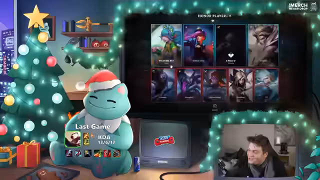 04:35:38Der Streamer beendet das aktuelle League of Legends-Spiel und wünscht seinen Zuschauern ein schönes Fest. Er bittet sie, abzustimmen, ob sie morgen frei haben, und gibt an, dass er selbst frei hat. Er verabschiedet sich mit den Worten 'Lasst es euch gehen, Leute' und schließt den Stream mit positiven und gemütlichen Worten.