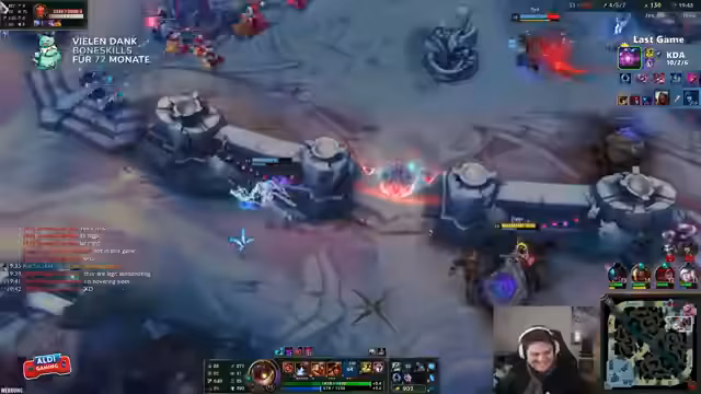 10:00:32Es wird über aktuelle Erfolge in League of Legends berichtet: Heute wurden 100 LP gewonnen, kurz vor Erreichen der 1000 LP-Marke. Das Spiel läuft aktuell besonders gut, was sich in hohem Schadensaustausch und positivem Spargefühl widerspiegelt. Diskutiert wird auch die aktuelle Mischungsrate der Gegner.