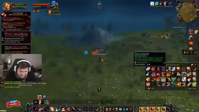 10:13:53Fokus liegt auf der Optimierung von Inventar und Ressourcen: Es wird über Reparaturmöglichkeiten, den Verkauf von Leinenstoff und die Herstellung von Bandagen diskutiert. Geplant ist das Sammeln von Questgegenständen wie Hafersäcken und Murloc-Augen, während die Inventarkapazität ständig neu bewertet wird.