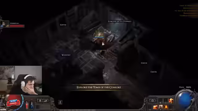 01:42:04Die Streamer erkunden den 'Run Temple' und erklären die Mechanik des Dungeons. Sie können Räume hinzufügen, um Loot-Tabellen freizuschalten, aber der Streamer erkennt zu spät, dass er dies vor dem Start hätte tun sollen. Da der Dungeon bereits gestartet ist, können sie bestimmte Bereiche nicht mehr betreten, was zu einer suboptimalen Loot-Ausbeute führt und die Notwendigkeit für eine zweite Durchführung deutlich macht.