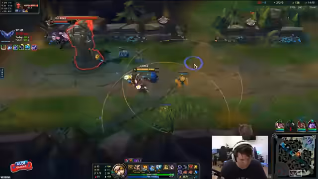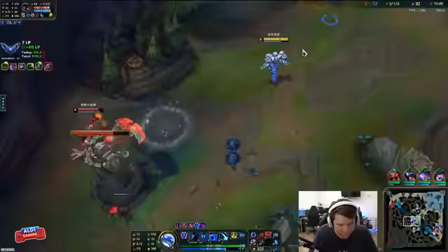 03:27:48Der Streamer startet mit technischen Problemen, da der Ton des Gegners und seine eigene Sprache unterbrochen und verzerrt klingen, was er mit einem 'U-Boot-Projekt' vergleicht. Trotz der audiovisuellen Probleme konzentriert er sich auf das Gameplay. Er kritisiert die Entscheidung seines Mitspielers, einen Full AP-Build mit Gragas zu wählen, und betont, dass ein Tank-Build für ein erfolgreiches Climbing effektiver wäre. Das Team kämpft mit einem langsamen First-Timer und einem gegnerischen Player, der laut Streamer 'Completely cracked' ist und das Spiel kontrolliert.