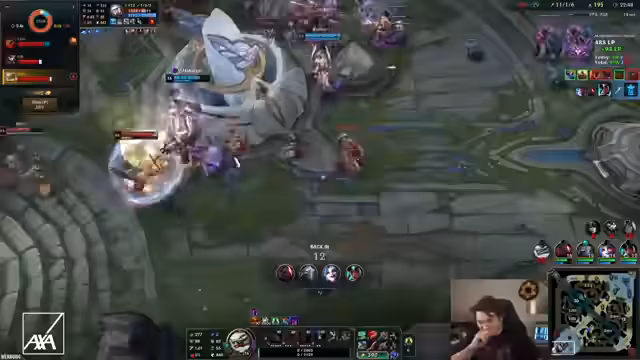 08:12:38Der Streamer reflektiert über einen kritischen Fehler im späten Spielverlauf. Sein Champion war stark genug, das Spiel zu tragen, doch durch einen falschen und nicht durchdachten Einsatz seiner Ultimate und einem nachfolgenden Fehlverhalten, bei dem er von mehreren Gegnern ausgeschaltet wurde, vergab er die Siegchance. Er konstatiert, dass sein Team zwar bis auf den gegnerischen Kasadin stark war, dieser aber als Full-Tank keine Bedrohung mehr darstellte.