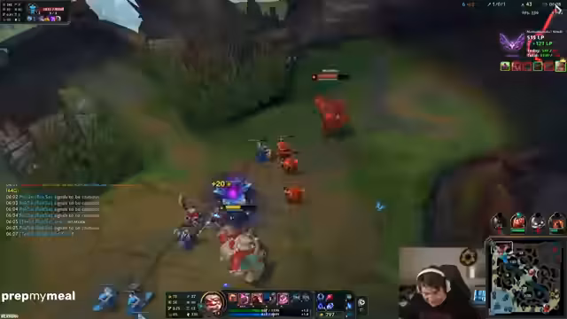 07:49:26Der Streamer analysiert ein laufendes Spiel, in dem sein Team bereits in der Frühphase drei verlorene Lanes aufweist, bevor der Jungle überhaupt einen Impact haben konnte. Er kritisiert den falschen Spielzug des Top-Laners, der Ignite anstelle von Teleport wählte, und wird selbst vom gegnerischen Jungler attackiert. Trotz der schwierigen Lage preist er den Gewinn eines 2v2-Kämpfes als Zeichen dafür, dass man niemals aufgeben sollte und eine gute Mentality entscheidend ist.