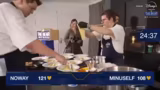 01:20:15Die Punktzahlen werden bekannt gegeben: Das Team München erreicht 27 von 30 möglichen Punkten, während Berlin auf 28 Punkte kommt. Der eine Punkt Unterschied resultiert aus einer Zeitverzögerung, da München eine Minute länger für die Anrichtung benötigte. Trotz des "Sieges" von Berlin machen sich beide Teams bereit für den nächsten Gang, ein klassisches Ratatouille in Lasagnenform. Während der Vorbereitung starten die Zuschauer eine "Water Challenge", um dem Berliner Team ein Handicap zu verschaffen, was dazu führt, dass diese vorübergehend keinen Strom mehr haben.