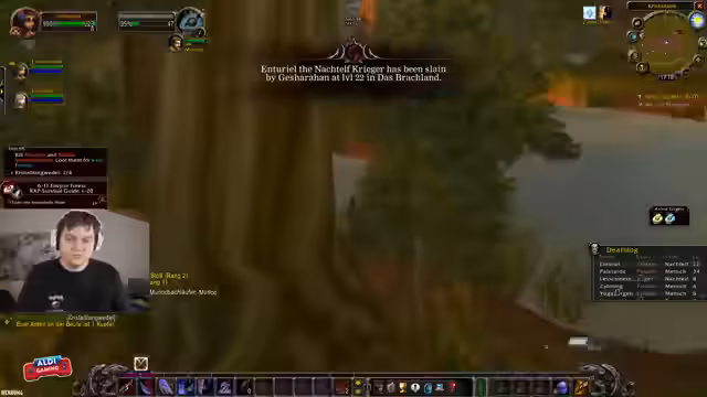 02:11:45Im Gameplay gibt es technische Schwierigkeiten, insbesondere mit der Server-Lo-Schleife (Layering), durch die Teammitglieder sich gegenseitig nicht sehen können. Es wird über die Verwendung von 'Rested XP' gesprochen und geplant, Schlachtzugssymbole zu nutzen, um sich besser zu erkennen. Die Gruppe kämpft damit, sich in Höhlen zu orientieren und findet sich in einer sehr vollen Umgebung wieder, in der Mobs extrem schnell respawnen und andere Spieler um Ressourcen konkurrieren. Die Kommunikation über die Positionierung wird erschwert.