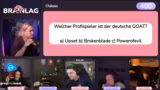 03:06:46Ein neues System für Chat-Votings wird implementiert. Bei jeder Frage soll nur der Chat eines bestimmten Streamers berücksichtigt werden. Die erste Frage, 'wer ist der individuell stärkste Spieler?', wird ausgewertet. Die Ergebnisse zeigen einen klaren Sieg für 'Freddy' mit 81%, was zu Diskussionen über die Treue des Chats und das Ausmaß der Troll-Votes führt.