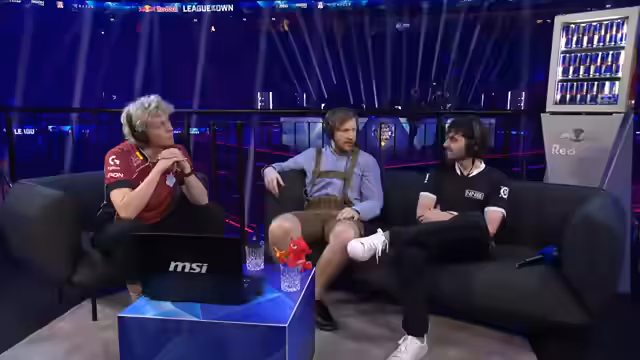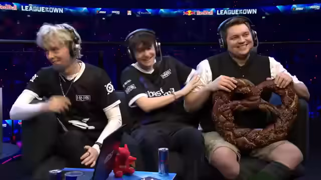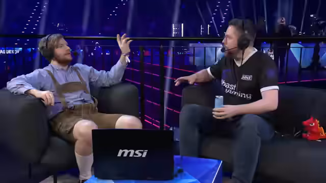 01:30:33Broken Blade äußert sich zum Spaßfaktor des Ultimate Fearless-Formats und erklärt, dass das Ziel war, den AD-Carry-Pool zu reduzieren, da viele AD-Carries nicht mehr spielen wollten. Er hatte viel Spaß mit den „Stroller Balls“. Auf die Frage nach der Strategie für T1 antwortet er, dass sie sie einfach spielen werden. Nach dem Interview werden die Highlights des G2-Spiels gezeigt. Der Streamer lobt Karni als guten Amumu-Spieler und Brügge für sein aggressives Spiel. Es wird erwähnt, dass G2 viel Spaß hatte und alle Gegner zerstört hat. Daniel „Broeki“ Brückmann kommt auf die Bühne und erzählt von seinen Eindrücken vom Event, insbesondere von den bayerischen Brezeln und der Atmosphäre in München.