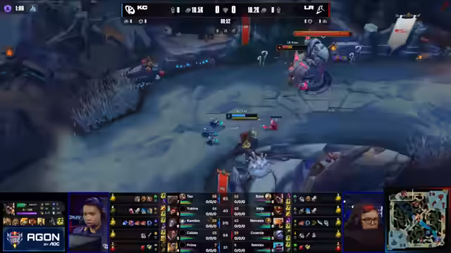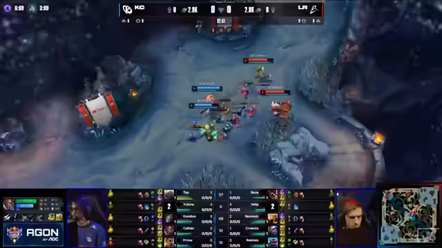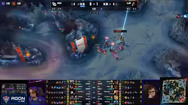 02:21:57KC positioniert sich frühzeitig für den Drachenkampf und nutzt den Obi-Wald zur Zonierung. Nemesis versucht, eine Verbindung herzustellen, was auf einen vielversprechenden Teamfight hindeutet. Trotz eines schnellen First Kills für KC und des Drachengewinns wird die Stärke der Bruiser-Champions hervorgehoben, die mit Trinity Force oder Standard-Items schwer zu töten sind und viel Schaden verursachen. Die Carries benötigen oft drei Items, um mithalten zu können. Los Ratones contestet den Drachen zu spät und ist nicht in Position, um ihn zu verteidigen. Ein guter Flash von Kled hindert zwei Gegner am Eingreifen, was KC einen entscheidenden Vorteil verschafft. KC agiert entschlossen und wartet geduldig, bis der Rated-C abläuft, bevor Orianna mit der Shockwave zuschlägt, was Los Ratones keine Chance lässt. Die Wichtigkeit der Lane-Kontrolle und des rechtzeitigen Verlassens der Basis wird betont, da Nemesis etwas zu spät aus der Basis kam. Solche Fehler sollten auf LEC-Niveau nicht passieren. Ein Dive auf der Bot-Lane wird erfolgreich von Los Ratones ausgeführt, wobei Nemesis die Aggro managt und den Turm kurz verlässt. Trotz des Verlusts auf der Top-Seite können sie den Drachen sichern. Die Frisur von Cadrell wird von den Kommentatoren humorvoll kommentiert.