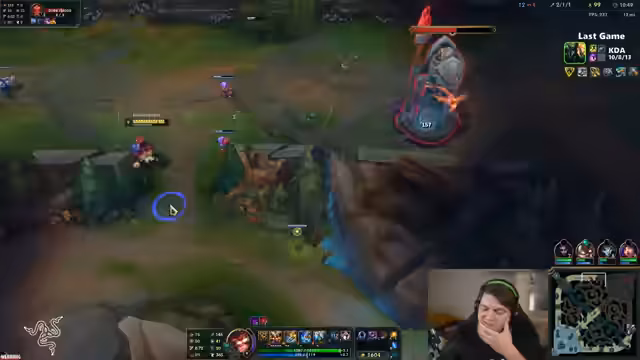 00:15:31Das Spielverlauf ist sehr umkämpft. Der Streamer stellt fest, dass sein Team auf der Bot-Lane stark zurückliegt und 4000 Gold im Rückstand ist. Während er persönlich auf der Top-Lane erfolgreich ist und mehrere Solo-Kills erzielt, kann er gegen die gegnerische Kassiopeia wenig ausrichten. Seine strategische Ratschläge konzentrieren sich auf die Notwendigkeit, den gegnerischen Split-Pusher zu stoppen und zu verhindern, dass dieser den gesamten Bot-Tower nimmt. Er äußert Verwirrung über die Performance des gegnerigen Supports und glaubt, dieser könnte im nächsten Patch gebufft werden.