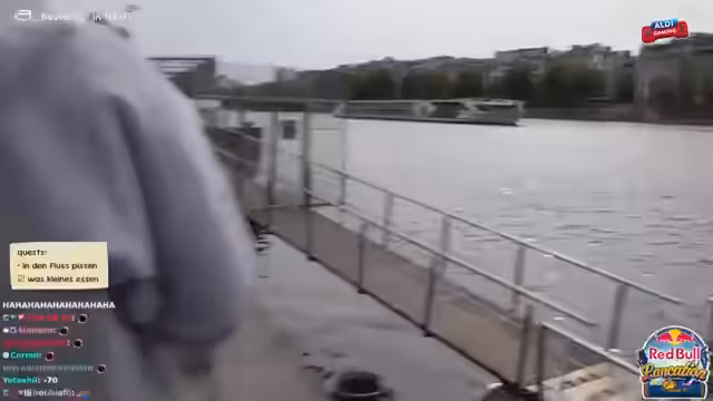 03:12:04Der Streamer befindet sich auf einer Bootstour und beschreibt das Gefühl, die Stadt von Wasser aus zu sehen. Es gibt technische Schwierigkeiten bei der Kameraführung. Nach der Tour muss dringend eine Toilette aufgesucht werden. Dabei wird über eine 4-Euro-Toilette gesprochen, bei der manche die Abrechnung umgehen. Die Suche nach einer öffentlichen Toilette gestaltet sich schwierig und es wird über die hohen Kosten in Frankreich gespottet.