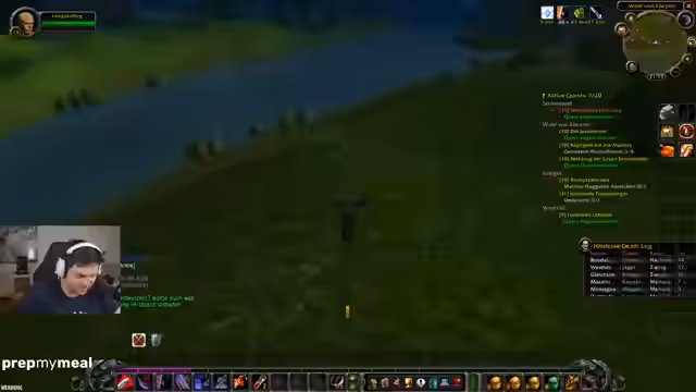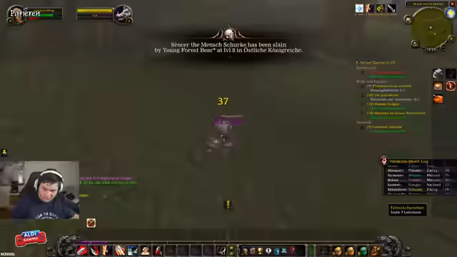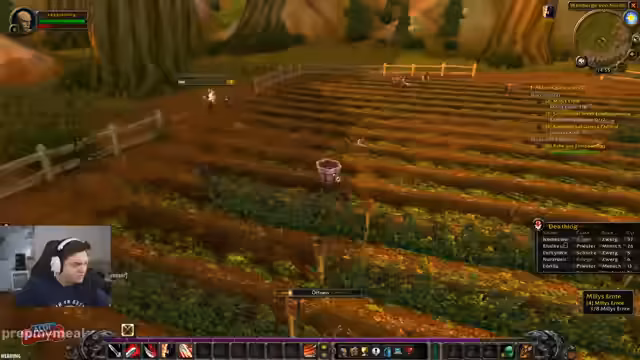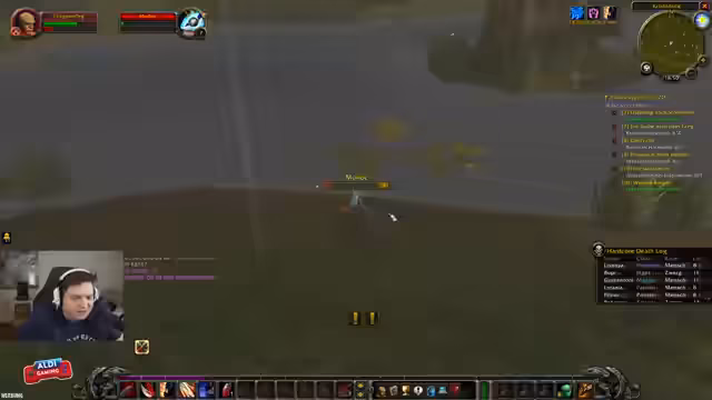 08:07:10Der Spieler sucht nach dem Elite-Monster Hogger, wird aber zunächst von anderen Gegnern beschäftigt. Als er Hogger entdeckt, stirbt er fast sofort und erkennt, dass der Boss zu stark für sein aktuelles Level ist. Durch Zuschauerhilfe kann er später mit einem Team (darunter MickeyLevel14) antreten. Nach einer intensiven Schlacht besiegen sie Hogger gemeinsam, wobei der Spieler seine Tank-Rolle ausprobiert. Er bedankt sich bei den Helfern und stellt fest, dass Gruppenkämpfe für Warrior sicherer sind.