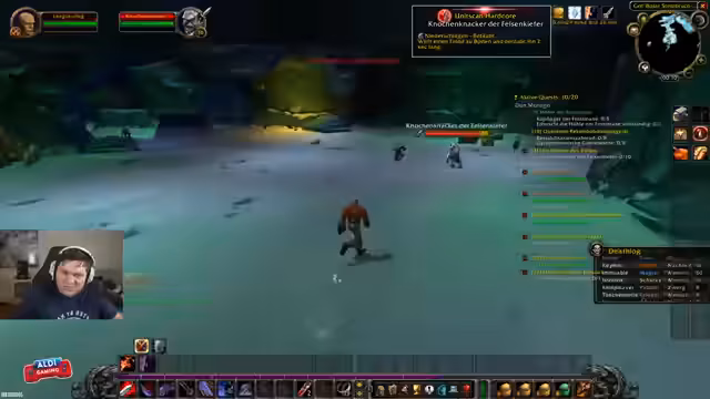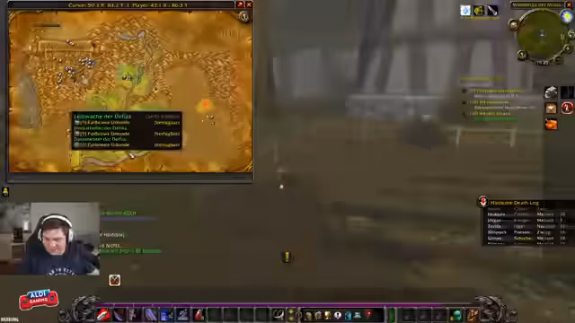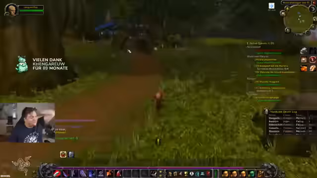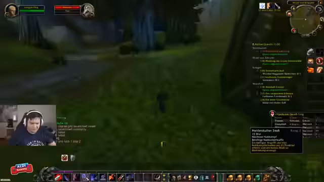 06:09:35Bei Kämpfen gegen Bären und Murlocs wird die Gefahr durch überlebende Gegner diskutiert, da häufig Fehlschläge auftreten. Der Streamer reflektiert über sein Überleben trotz risikoreicher Pulls und erwähnt, dass ein Zuschauer ihn vor einem sicheren Tod bewahrte. Es wird über die Verwendung von Schilde und Schmiedekunst als Aufwertungsmöglichkeit gesprochen.