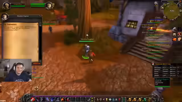 00:00:25Der Streamer bereitet sich auf die NNO Playoffs vor, die für 15:30 Uhr angesetzt sind. Er diskutiert die Zeitverschiebung durch die Gegner und betont, dass Autolooting deaktiviert ist. Während der Installation von Add-ons stellt er Probleme mit der Quest-Verarbeitung fest und versucht, die Bruderschaft der Diebe zu finden. Er erwähnt strategische Elemente wie das Zählen von Minions und die Nutzung von Fähigkeiten wie Heroic Strike, um die Ragebar zu managen. Die Notwendigkeit, schnell zu leveln, wird hervorgehoben, während er auf erste Quests und Loot-Möglichkeiten stößt.