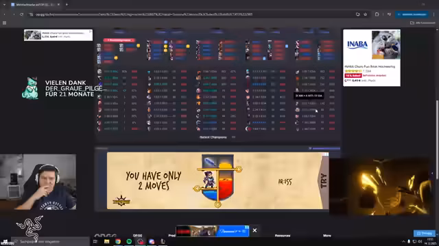 00:51:10Der Streamer realisiert, dass er die Anmeldung für die Playoffs vergessen hat, und wechselt zu League of Legends. Er diskutiert aktuelle Matches und Sterberaten von Spielern in WoW. Später plant er eine spontane Windchallenge und den Deadmines-Run. Für das Playoff-Match analysiert er die Gegner, erwähnt Krankheitsfälle im Team und bespricht die Ban-Phase. Er priorisiert Bans gegen Champions wie Gwen und Kalista, um Druck auf die Botlane zu reduzieren, und diskutiert Pick-Strategien für Sion und Orianna.