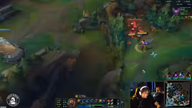 01:36:20Während des Spiels entscheidet sich der Streamer, einen kampflosen Spielstil gegen einen Warwick-One-Trick-Pony zu fahren. Seine Strategie ist, dem Feind aus dem Weg zu gehen, da Warwick nur durch erfolgreiche Kämpfe stark wird. Er ist jedoch frustriert über einen bekannten Bug, den Warwick-Spieler ausnutzen, um permanent erhöhte Bewegungsgeschwindigkeit zu erhalten. Er kritisiert Riot Games dafür, diesen Bug seit langer Zeit nicht zu beheben, was das Spiel unfair macht und sein Spielziel erschwert.
